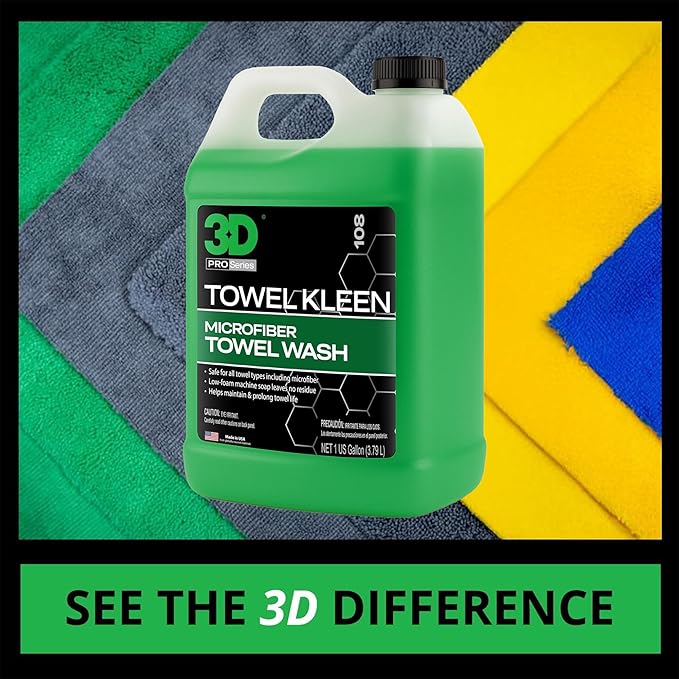 3D Towel Kleen Concentrated Microfiber Detergent - Deep Cleans, Restores & Maintains Car Wash Towel Life - Low Foam, No Residue Premium Laundry Soap 1 Gallon