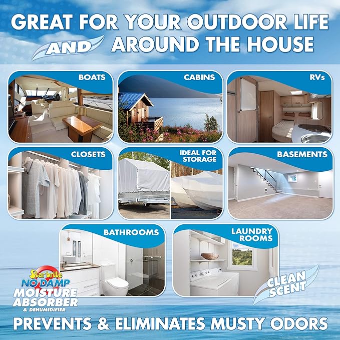 STAR BRITE No Damp Moisture Absorber & Dehumidifier - Simple, Portable, Humidity Control for Boats, RVs, Seasonal Homes & More - Prevent Musty Odor & Moisture Damage - 12 OZ (085412)