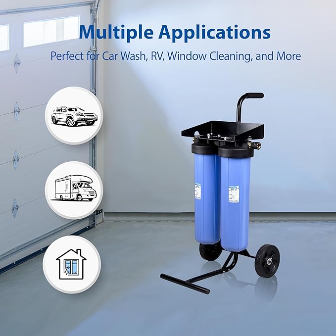 - 20” super efficient DI filter captures dissolved solids and releases hydrogen and oxygen when water passes through, making the colour, paint, chrome, and glass shine as bright as possible