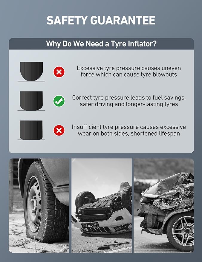 - INCREASED SAFETY: Properly inflated tires provide better performance in all weather conditions, decrease the likelihood of flats, explosions, and crashes; Increase your MPG, save money on fuel/tire wear, and drive safer.