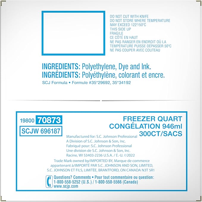 SC Johnson Professional Ziploc Quart Food Storage Freezer Bags, Grip 'n Seal Technology for Easier Grip, Open, and Close, 300 Count