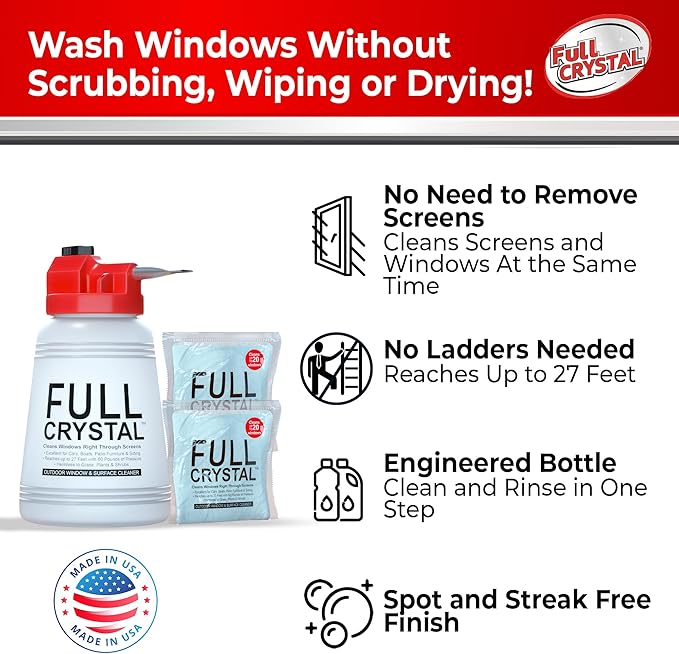- MADE IN THE USA: Cleaning Crystals are safe and non-toxic. (BEWARE: Overseas sellers do not include cleaning crystals.) They clean windows effectively without harming plants, lawns, shrubs, or flower beds, and are non-corrosive to plastics and other outdoor surfaces.
