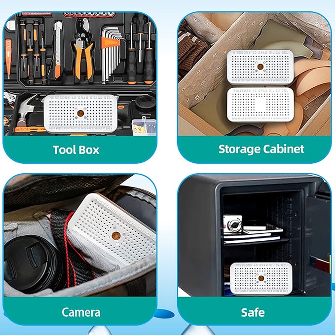- 【High Absorbing Capacity and Versatility】: Our silica gel offers exceptional moisture protection for enclosed and sealed storage spaces of up to 30 cubic feet. Whether it's a safe, ammo cans, tool box, 3D printer filament storage box, weapon case, closet, or any other valuable storage container, our silica gel provides an effective solution to prevent moisture damage.