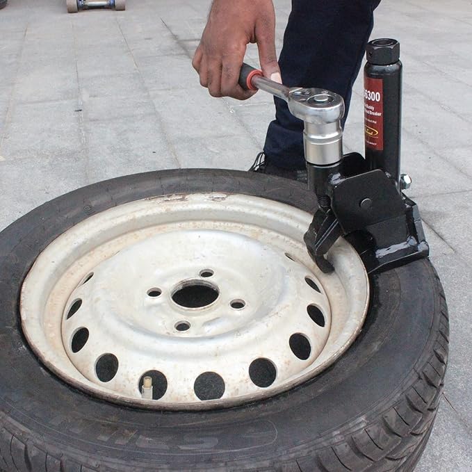 - Easy to use,just drive it in, snug it down and turn the jack screw.With the locking collar, it will holds tire securely. Makes work safe and convenient when you operate
