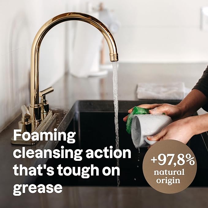 - HIGH PERFORMANCE: Made with 97.8% naturally derived ingredients, this dish soap liquid breaks down stubborn grease and food particles without leaving a trace, gentle on hands and unscented.