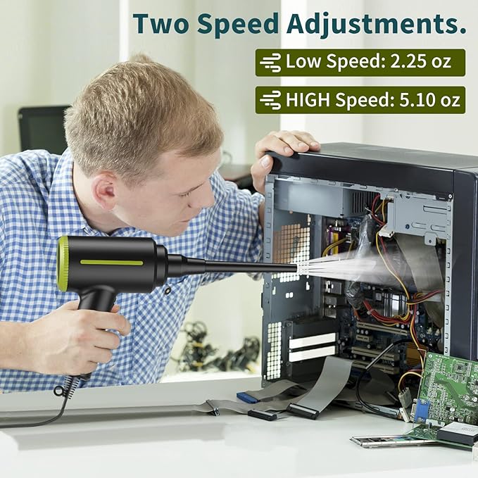 - π¨[Powerful Duster] Plug and play. Just buckle the trigger. You can choose two speeds as needed. The maximum speed of the air duster can reach 5.1oz.