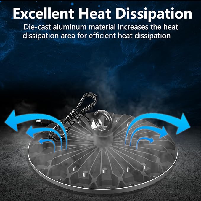 - 【LONG LIFE】Our UFO high bay lights have additional drivers to ensure the stability of input current and voltage, so the emitted light will not flicker like other UFO lamps on the market, and also extend the lifespan of UFO industrial lamp