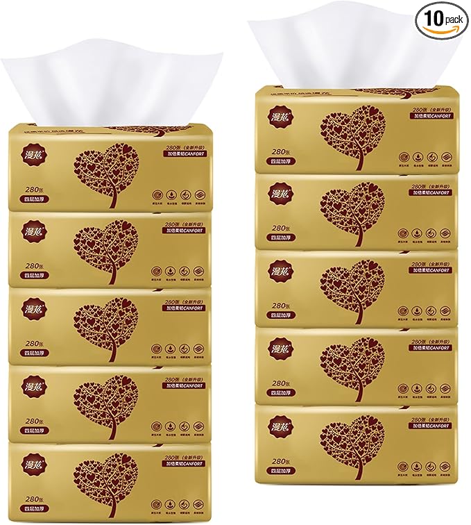 10 Packs Soft Small Facial Tissue, Disposable Facial Napkin, Wood Pulp Fiber Material NOT COTTON, Facial Towel, White Facial Paper Tissue, 4-Ply, 10 Pack, 280 Sheets per Pack, 2800 Sheet In Total