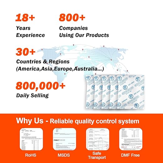 - [Food Grade Silica Gel] Cobalt chloride free, Our Packet Material was Tested under Strict Regulation for Food Specifications, can be used with foods and pharmaceuticals.