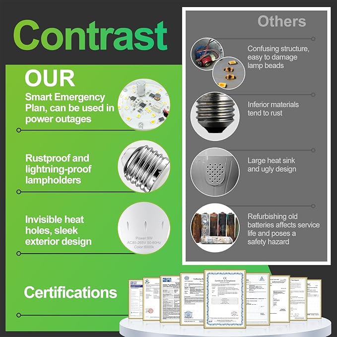 - ESSENTIAL HOUSEHOLD TOOLS: Essential safety tools in case of power outage, storm, hurricane, etc; Prepare for emergencies with these emergency battery bulbs, and say goodbye to excess candles, flashlights, and lanterns