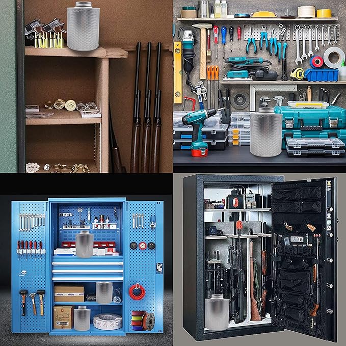 - 【Versatile】: Silica gel container can protects up to 600 cubic ft of enclosed storage space., including safes, ammo cans, toolboxes, 3D printer filament storage boxes, weapon cases, and closets. It provides an effective solution for moisture prevention in various items such as guns, important papers, legal documents, collectibles, books, jewelry, photo albums, shoes, camera lenses, valuable camera equipment, toys, leather clothing, ammunition, and photographic gear.