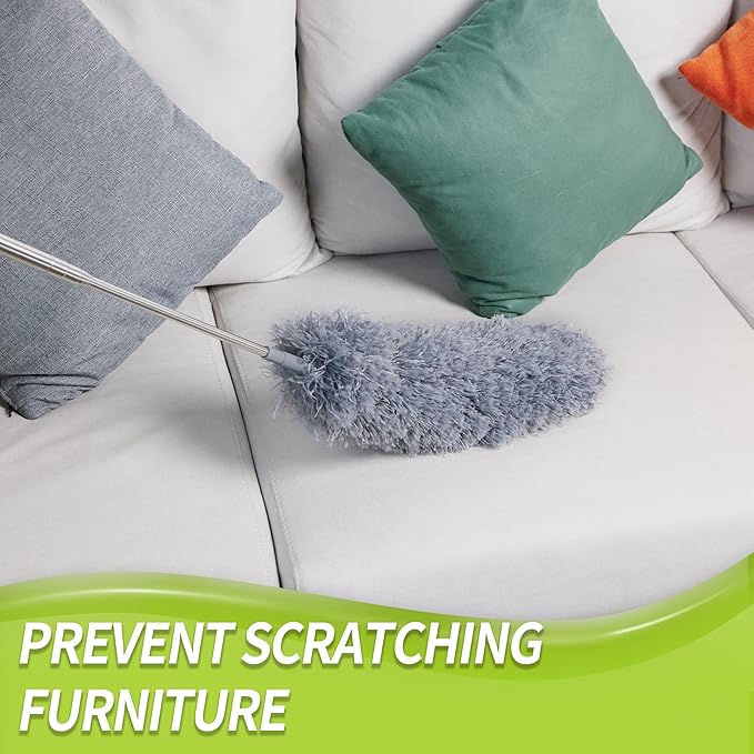 - 【EFFORTLESS CLEANING】The bendable microfiber head conforms to furniture surfaces, while the silicon-tipped design prevents accidental scratches. Whether it's ceiling fans or hidden corners, our duster lets you reach all areas without strain