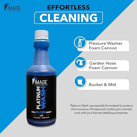 Image Wash Products - 16oz Platinum Wash Car Soap โ Car Wash Foam Soap for Foam Cannon & Pressure Washer | High Gloss RV/Truck Wash Soap | Bubble Gum Scent, Detailer Grade Car Soap