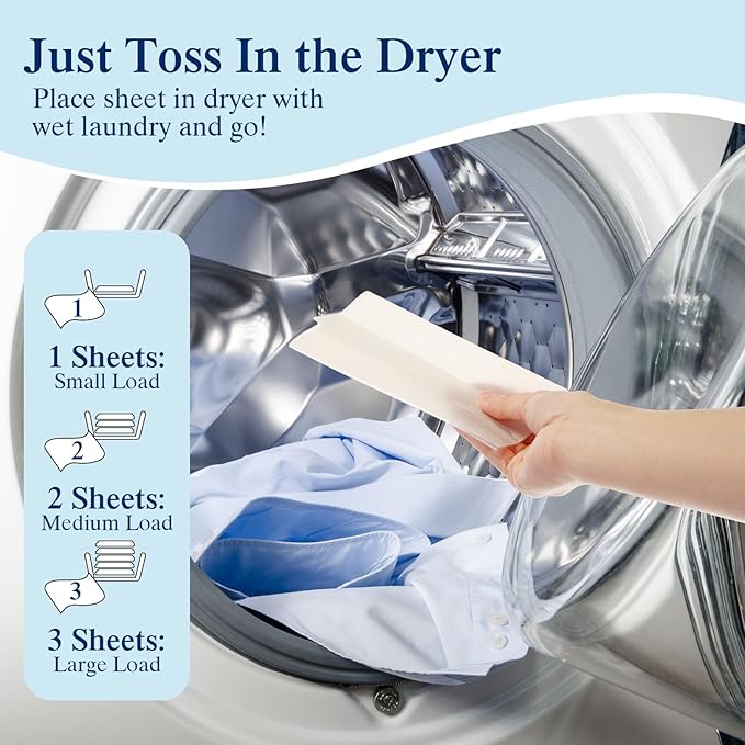 - Easy to Use and Multiple Functional: you can simply toss in 1 fabric sheets dryer for regular size loads, or 2 sheets for large loads to reduce wrinkles and static cling, help repel pet hair, as well as soften fabrics, and reduce static while keeping your clothes smell fresh and fragrant