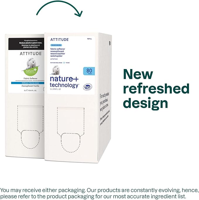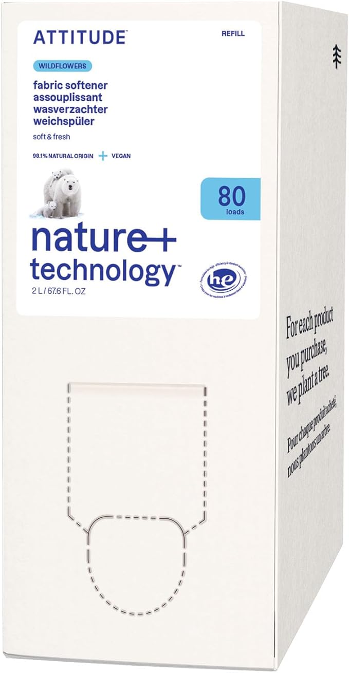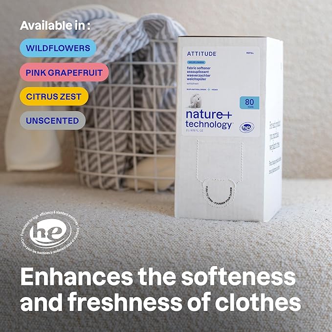 ATTITUDE Liquid Fabric Softener Refill, Plant-Based & Vegan, HE Compatible, Naturally Derived, Wildflowers Scent, 80 Loads, 67.6 Fl Oz