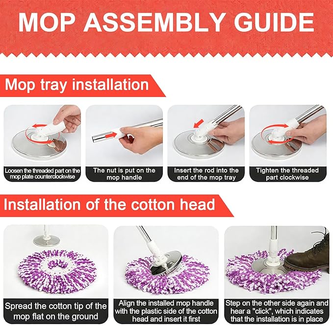 - WIDE COMPATIBILITY WITH SPIN MOPS: This versatile spin mop replacement handle is compatible with most spin mops, making it ideal for cleaning various surfaces such as tile floors, wood floors, windows, and even vehicles. Upgrade your cleaning routine today with the efficient spin mop replacement head!Please pay attention to the size and model of the product before purchasing.