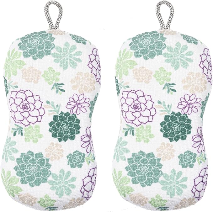MÜkitchen Premium Microfiber Sponge Set for Dishes and Cleaning, 2 Pack, Printed (Succulents)