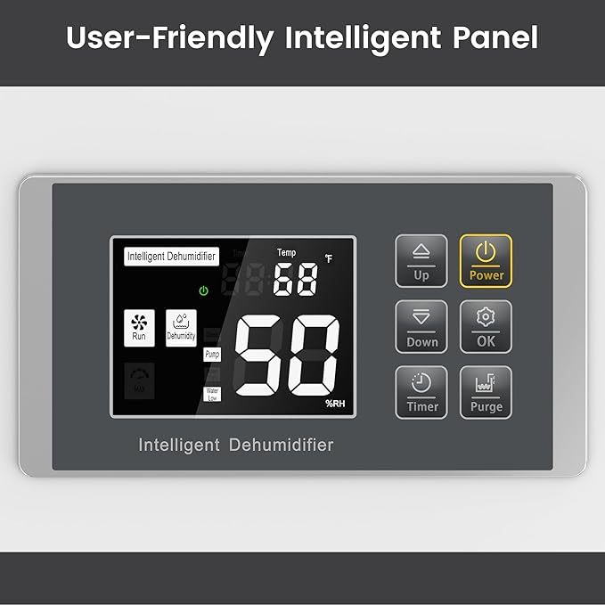 - Easy to Move and Operate: This Dehumidifier is designed for easy Mobility and Operation. It features a Built-In Pump, Large Wheels, a Removable Push Handle, and Wheel Locks. The User-Friendly Interface makes operation simple, effectively solving your Humidity Problems. Its Compact Design ensures it fits seamlessly into any space.