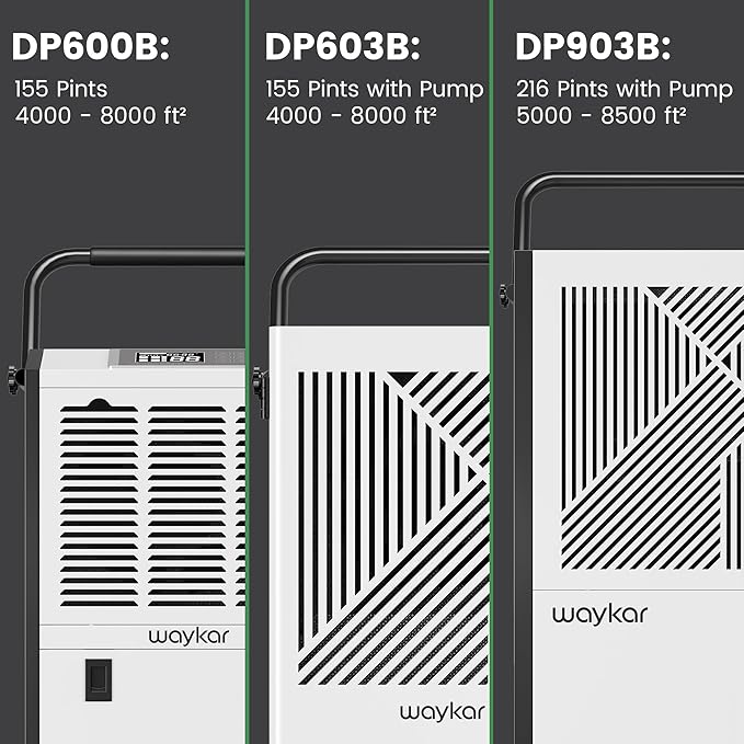- Efficient and Energy-Saving: The Waykar Large Commercial Dehumidifier with Pump is capable of removing up to 216 pints of moisture per day (at 95°F, 90% RH) in spaces up to 8,500 sq. ft. Its High-Efficiency Compressors make it energy-saving, ideal for large Basements, Warehouses, Gyms, Indoor Pools, Spa Areas, Grow Rooms, Factories, and more.