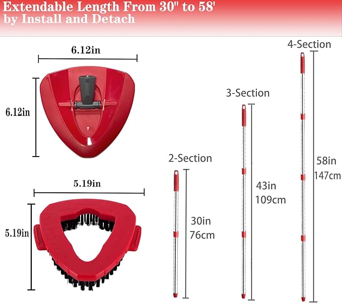 - 【Easy to install and us】The mop's handle is made of high-quality stainless steel material, ensuring durability and sturdiness for long-lasting use. It comes in 4 sections and can be adjusted from 30in to 58in. You can combine it into different sizes according to your height, usage habits, and scenarios. Sufficient comfort will make your cleaning job much easier.