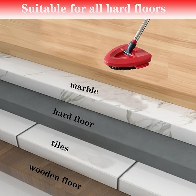 - 【Spin Mop Base Scrub Brush】 The stiff bristle scrubbing brush is constructed from PP material. The bristles can reach into recesses and grout lines, allowing you to clean tubs, tiles, areas around toilets, decking, and stubborn dirt on floor tiles.
