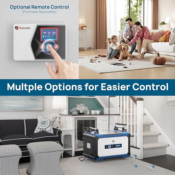 - User-Friendly Design: The compact and professional design of our crawl space dehumidifier makes it easy to operate across various applications. Adjustable humidity settings, a clear temperature display enhance usability, auto check machine fault Function, memory start, GPP mode, and lower noise levels ensuring optimal performance tailored to your needs.