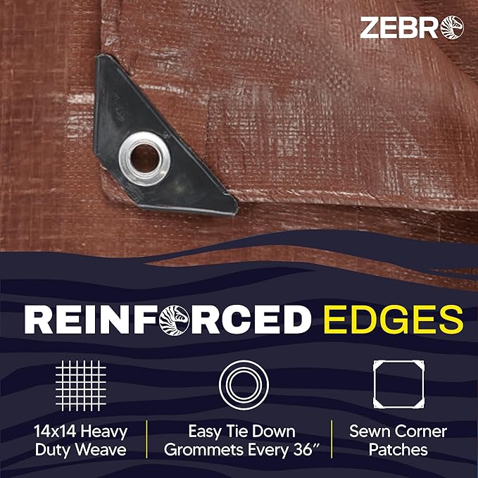 10' x 20' Brown Tarp with Grommets Reinforced - 5 Mil Thick - Durable UV Resistant Plastic Tarps Waterproof - Large Tarpaulin Cover for Outdoor Camping Over/Under Tent Tarp RV Roof Rain - Zebro