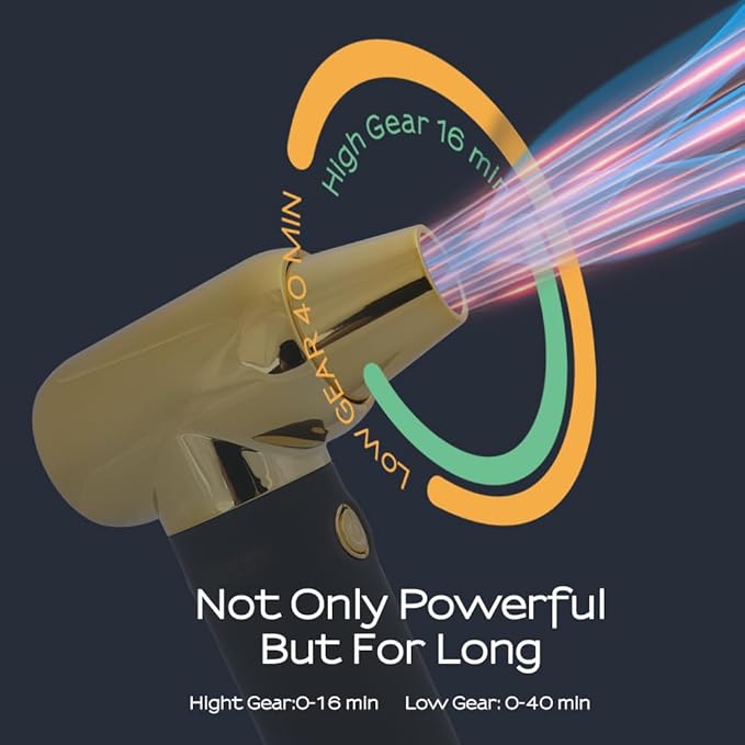 - Powerful Battery Life:The Electric Air Duster features a large 2500mAh battery with three adjustable speed levels.In the low-speed setting at 60,000 RPM,it provides a battery life of 100 minutes.The medium-speed setting at 100,000 RPM offers a 70-minute battery life,and in the high-speed setting of 120,000 RPM,it lasts for 20 minutes.With the included Type-C fast charging cable,it can be fully charged within 2.5 hours.