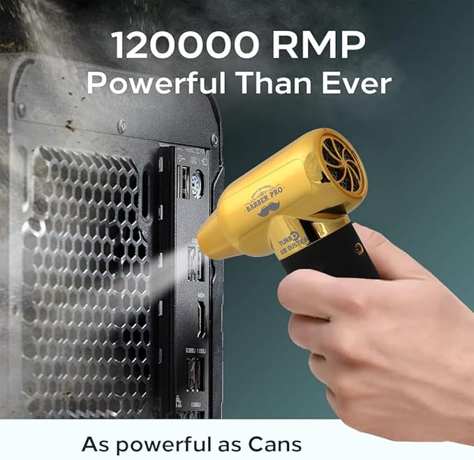Compressed Air Duster - Electric Duster for Hair Barber, 3 Gear Mini Portable Jet Dry Air Blower, Cordless Vacuum Cleaner, for PC, Office,Salon, Fan, Laptop, Keyboard, Car -Black Gold
