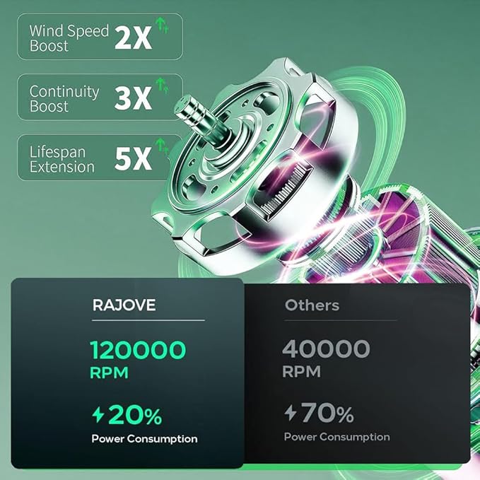 - High-Speed Brushless Motor:Our Compressed Air Duster features a high-speed brushless motor with a maximum RPM of 120,000,delivering a top wind speed of 30m/s and a powerful wind force of up to 4.8oz. The noise is less than 70dB. Its strong and high performance and low noise while retaining strong airflow to effectively remove dust Get a quiet cleaning experience whether at home or in the office.
