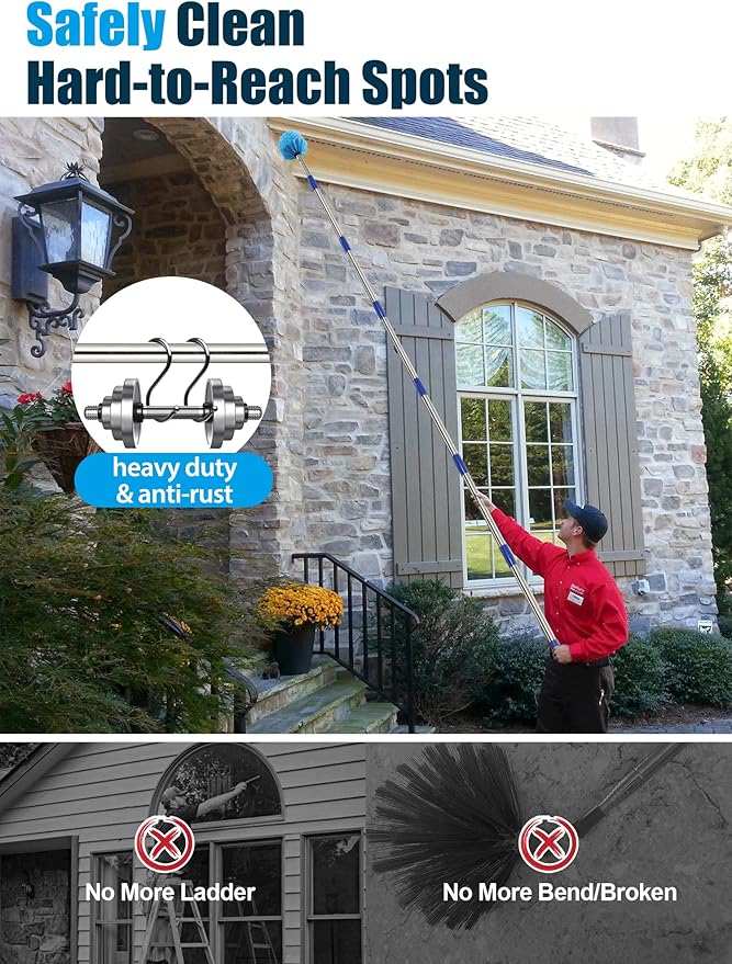 - Versatile Cleaner: This cob web duster is designed to tackle both indoor and outdoor cleaning tasks, wall corners, cobwebs, window screens, vaulted ceilings, ceiling fans, lamps, and more. Whether it's your porch or entryway, this brush helps you maintain a clean and inviting first impression.