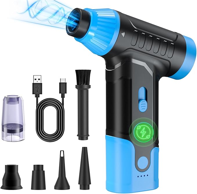 Electric Compressed Air Duster - Electric Air Duster for PC, Rechargeable Mini Blower 150,000 RPM Cordless Vacuum for Cleaning Keyboards, Computers and Cars (Blue)