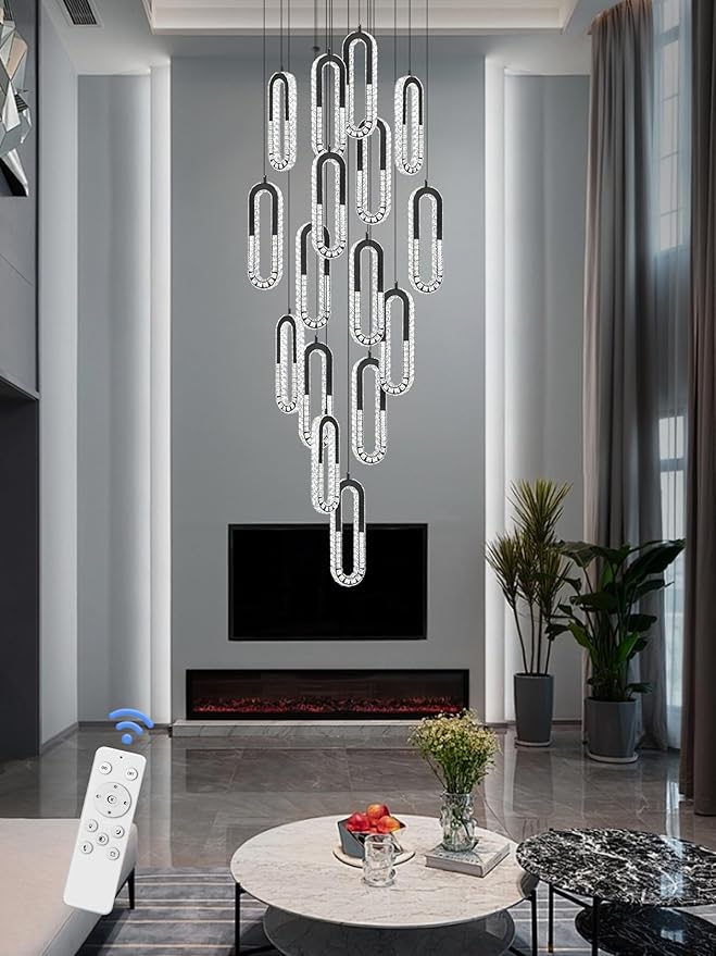 Large Staircase Crystal Chandeliers 16-Light Modern foyers Entrance 150" Long Chandeliers for High Ceilings Dimmable 2700K-6000K