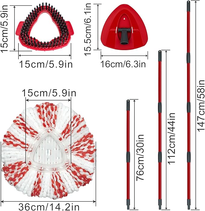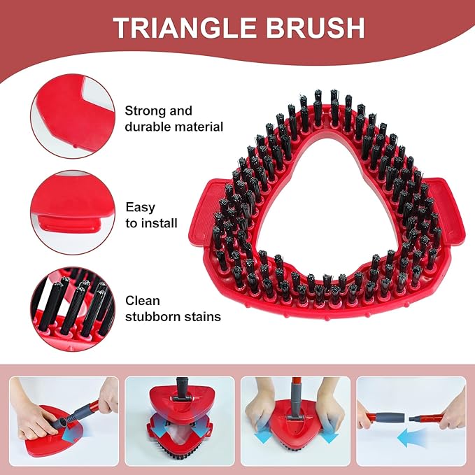 - TRIANGLE MOP BASE/SCRUBBER MOP HEAD: Designed with a rounded triangle shape, this mop head ensures your furniture stays protected while cleaning. The scrubber mop head reaches into tight spaces, grout lines, and hard-to-reach areas, making it good for cleaning tubs, tiles, around toilets, decking, and tough dirt on floor tiles.