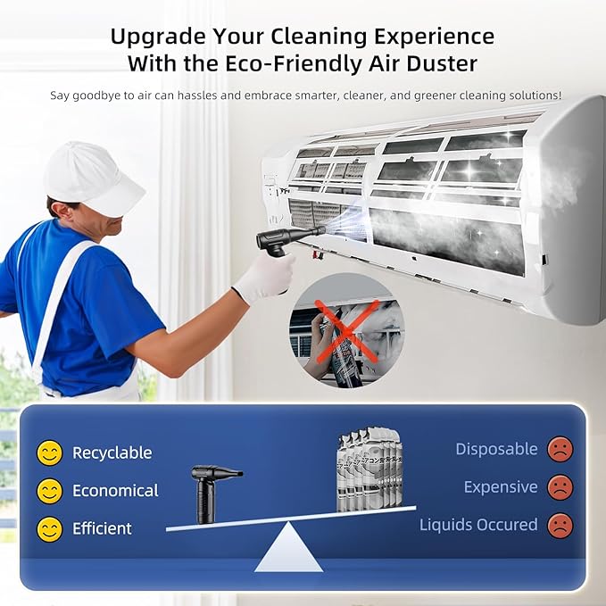 - Compressed Air Alternative: Our cordless air blower is an ideal alternative to disposable compressed air cans. It can be recharged and used repeatedly, and no liquid or ice will be produced during the cleaning process, which can effectively protect your electronic devices from liquid damage. Environmental protection and energy saving make the cleaning process safer and more reliable.If you have any use problems, please contact us and we will solve it for you within 24 hours.