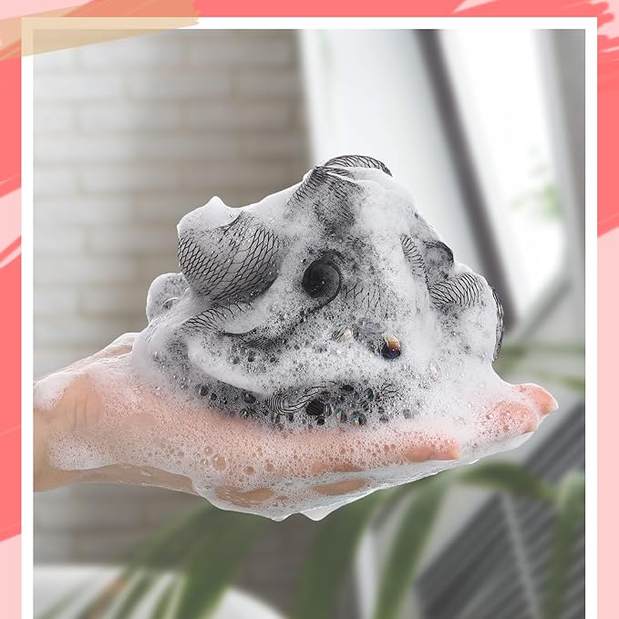 - Quick Foaming Design: using the bath sponge pouf ball allows a creation of a large number of bubble baths, enhancing your bathing experience; Once done, you'll find it easy to clean and hang for drying and next use