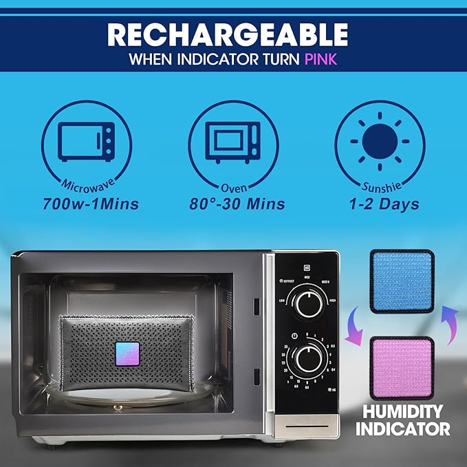 - Reusable Desiccant Bags: silica gel desiccant bags are designed for reusability; They come with blue indicator beads which turn pink as humidity saturation levels increase, facilitating observation of the silica gel desiccant's reaction; You can easily reuse them by heating the desiccant bag in the microwave for 2 to 3 minutes, ensuring not to bake for too long