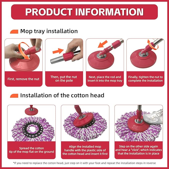 - Easy installation and operation: Installing this spin mop replacement handle is easy without complex tools. It rotates for dehydration effortlessly, saving time and energy