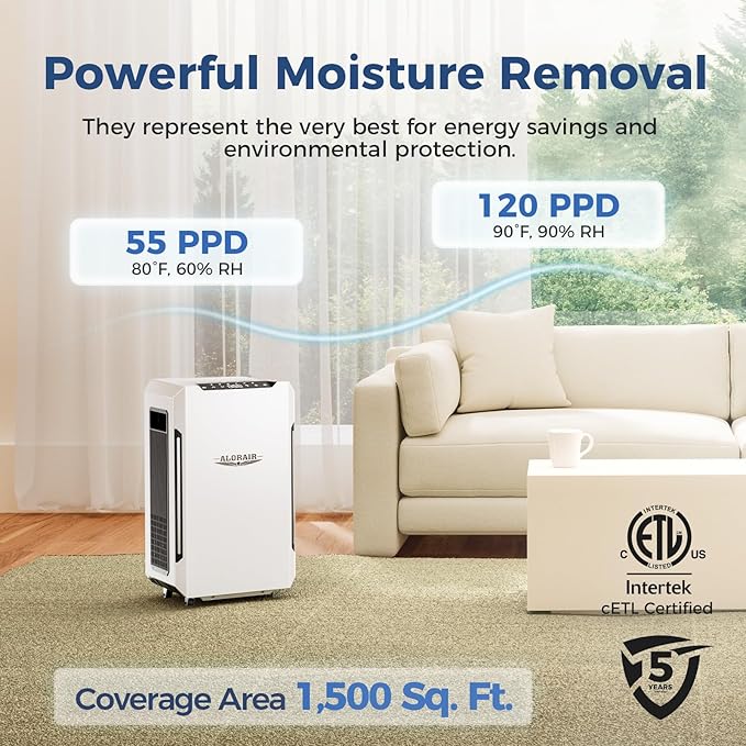 - 5-Year-Limited Warranty: ALORAIR dehumidifiers are fully compliant with the electrical safety ETL. Every AlorAir dehumidifier comes with a 5-year limited warranty with a professional team ready to assist at all time