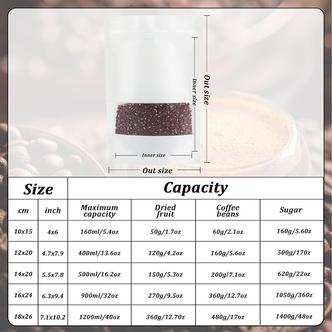 - Thoughtful Design:The corners of the bag are rounded to avoid scratching the skin during use.The matte window in the center allows you to see what's in the bag without opening the closure.Vertical design makes it easier to place the food bag on the table.