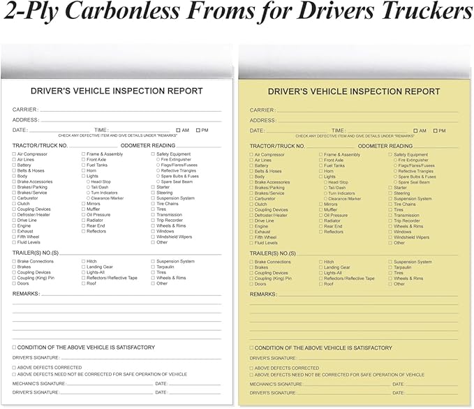 - Material - Excellent quality carbonless paper is used in their production, tears off easily along the perforation. Minimize downtime & extend vehicle life span through our DVIR inspection book.