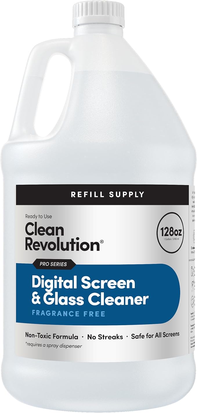 Clean Revolution Pro Digital Screen and Glass Cleaner, Spray and Wipe TV Screens, Computers, Mirrors and Windows: Non-Toxic, No Harsh Chemicals or Odors.Unscented, 128 oz (Pack of 1) - Made in USA