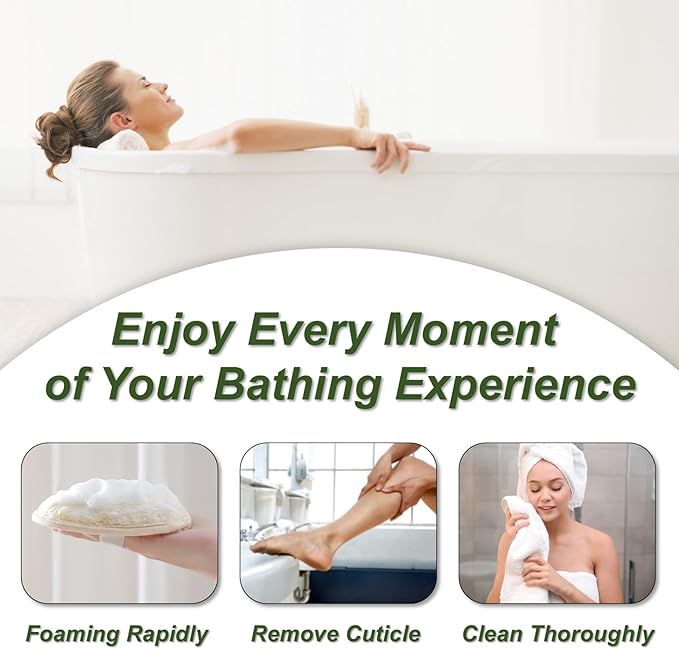 - [Easy to Use and Store] When you receive the loofah sponge and find it flat and hard, please soak it in warm water for a few minutes to allow it to expand and soften, then apply shower gel or soap and scrub the body with the loofah sponge to remove keratin and dirt. It has a top lanyard for convenient storage, and it is also recommended to clean it after each use and hang it in a well-ventilated area to dry.