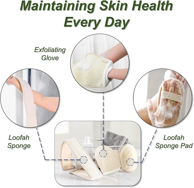 - [Deep Cleansing] YUNKWONG's natural loofah sponge shower set is a multipurpose skincare item that may be used every day in the shower or bath with your favorite shower gel or soap. Loofah's fine fibers can penetrate deep into the skin's pores, efficiently eliminating oil and dirt that clogs them, letting the skin to breathe more freely.