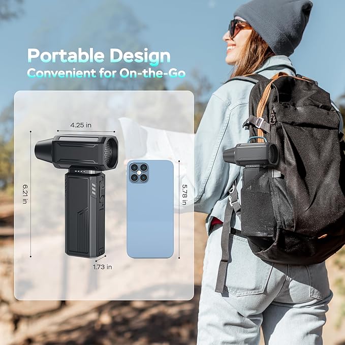- 【Portable and Budget-Friendly】This mini blower cordless offers a sustainable alternative to traditional compressed air cans, eliminating the need for disposable products. This jet fan protects your electronics while saving you money in the long run. A one-time investment that covers all your cleaning needs, its portable, cordless design and compact size make it easy to carry anywhere, even fitting into your pocket, simplifying your dusting tasks.