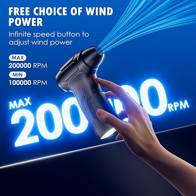 - 🌪️High-Speed Compressed Air Dust - Our compressed air dust uses an upgraded Eighth-Generation Motor,reaching up to 200,000 RPM, 300G of Air Pressure,and 120 M/S Airflow. It offers powerful performance, comparable to a category 16 typhoon, effortlessly cleaning every corner.
