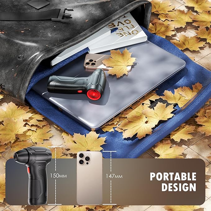 - 👜Lightweight and Portable - Our cordless air duster is 35% smaller than other models, making it lightweight, portable, and comfortable to hold—about the size of an iPhone. Unlike canned air, It saves you money Since It’s rechargeable and reusable. Say goodbye to disposable air cans!