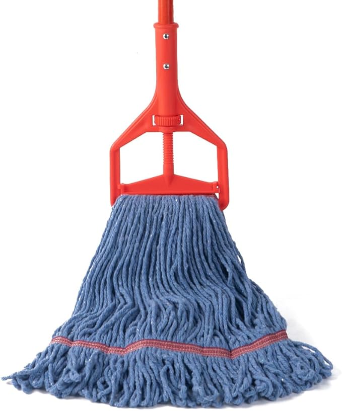 Matthew Heavy Duty Screw Clamp Mop Handle 60 inch Fiberglass Mop Stick,Commercial Mop Head Replacement Holder for Floor Cleaning,Quick Change for Wet Mop Handles w/Roller - 12Pack Red