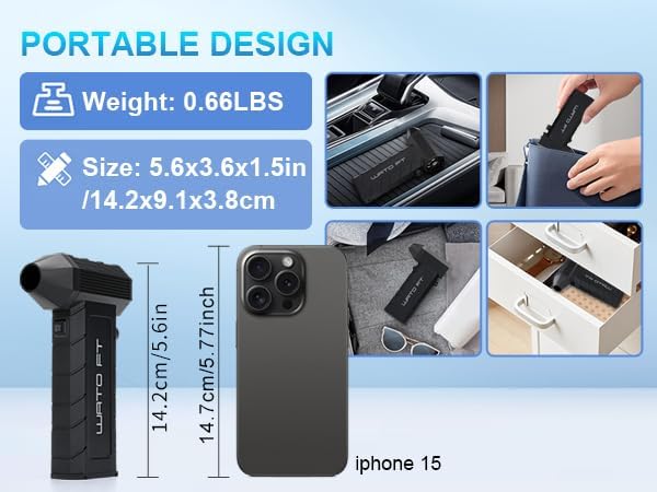 - 🔹【Cordless, Lightweight & Easy to Carry】 Only 0.66 lb with a compact body and included lanyard—this portable air blower fits into your tech toolkit, backpack, or car. Great for travel and on-the-go dusting.