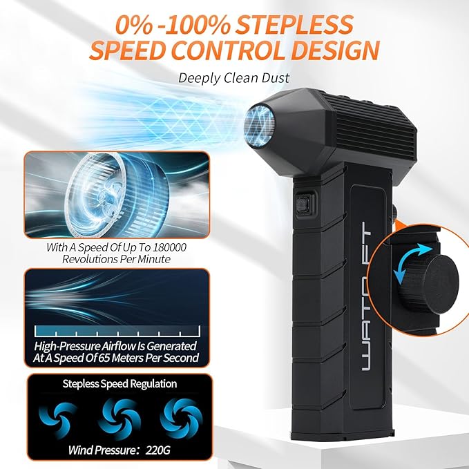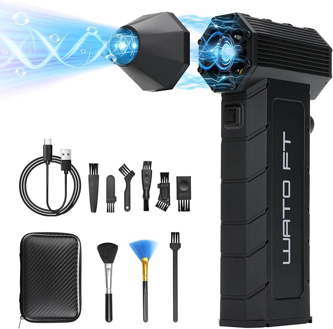 - 🔹【180,000 RPM High-Speed Air Duster for Electronics】 Blasts away dust and debris with a turbo motor spinning up to 180,000 RPM. Perfect compressed air alternative for cleaning PC, keyboard, laptop, camera, or console.